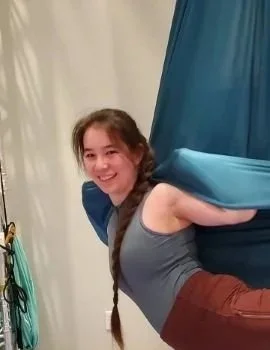 Hammock Levels 1-3, Lyra 1, Lyra 2, Bungee Intro, Aerial Thai, Lyra Choreographer Level 1/2. Specialty - Lyra. Safety Officer. She brings the brains and her chemistry brain. She love teaching INTRO classes, seeing people do things they didn’t think they could do.